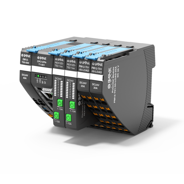 The CPC12 and EM12D ControlPlex®® controllers connect the COM REX system with the superordinate communication interface. In addition to IO link and Modbus RTU, interfaces for Ethernet based fieldbus connections via PROFINET, EtherCAT, EtherNet/IP and Modbus TCP are also possible. The bus controllers record all status information and measuring values of the circuit protectors and enable their control and parametrisation.